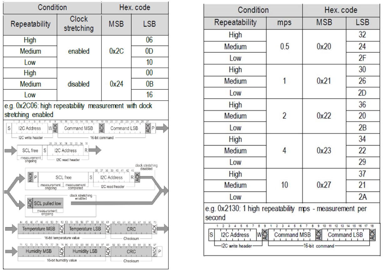 TH10有两种测量模式:单次触发模式和周期触发模式。当需要温湿度数据时,主机首先会通过I2C发送地址,然后发送触发指令。TH10在收到触发指令后会进行温湿度的数据测量,完成测量后,主机会再通过I2C发送地址,然后依次读取温度数据与湿度数据,最后由主机发送Nack 结束通信,完成测量。
